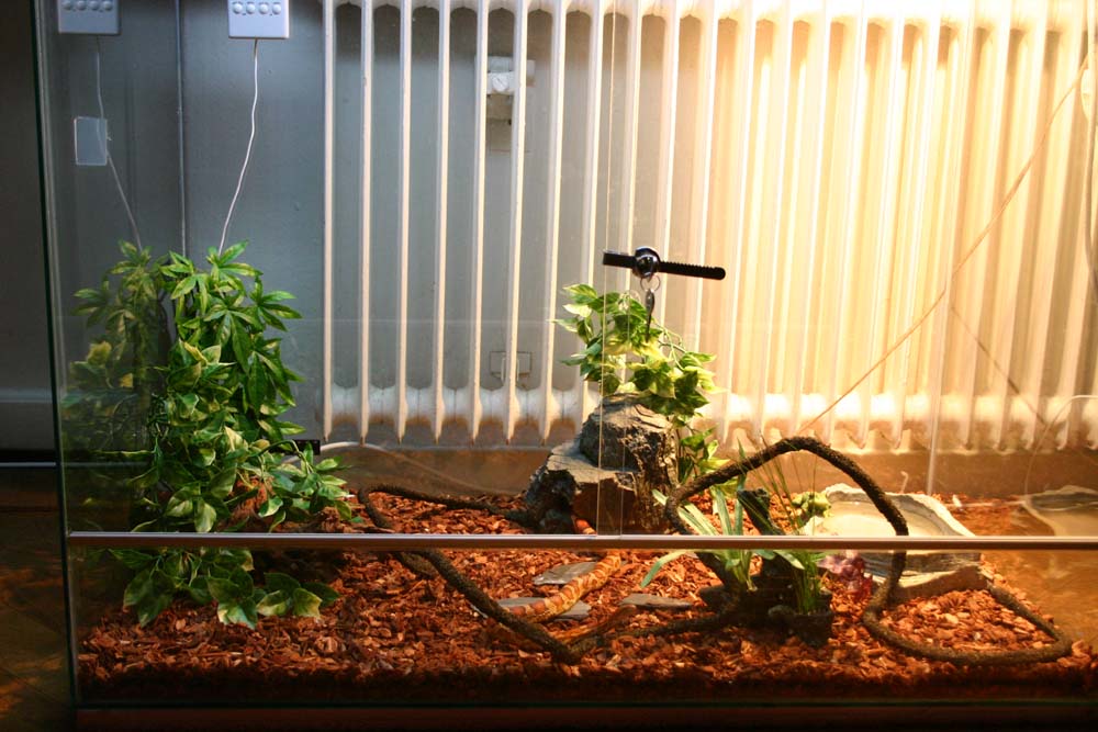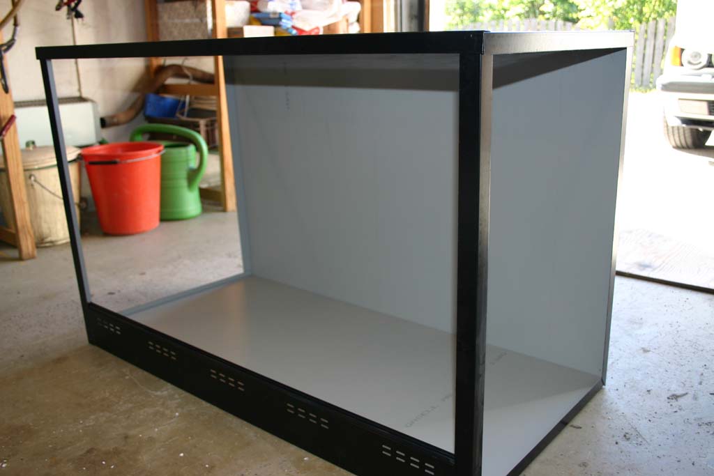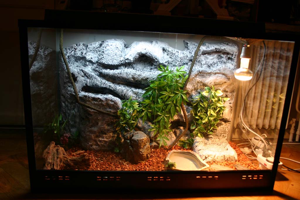 Det nya terrariet, det är på 325L (100x65x50cm) och är gjort av metall/glas. Säljs utav ReptilCenter (Länk)