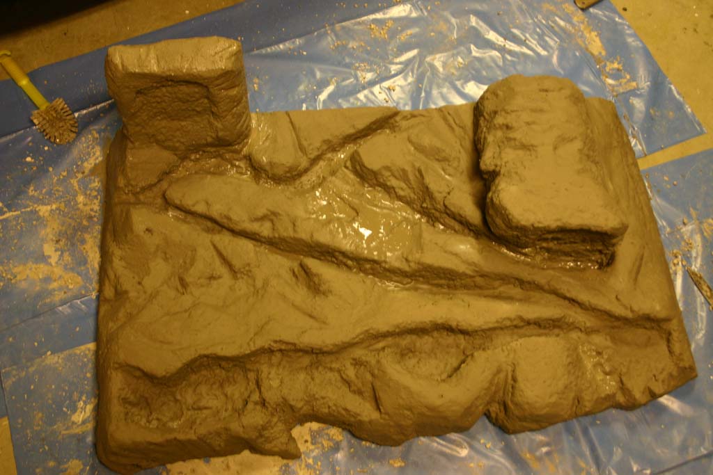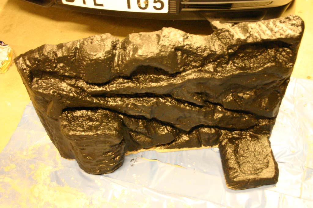 Här har jag lagt på ett första lager med cement över frigoliten